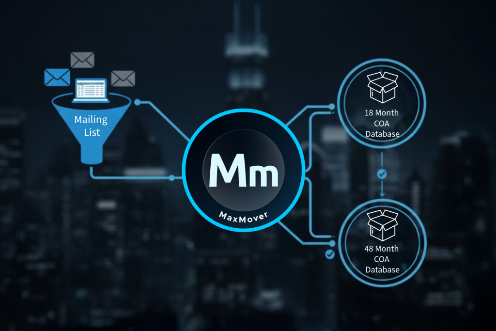 MaxMover connects your mailing lists to the USPS 18- and 48-month change-of-address (COA) databases. It compares your addresses to the official USPS records and updates any that have moved. Unlike online consumer services for individuals, MaxMover handles bulk data for businesses and organizations, processing millions of addresses swiftly and reliably.
